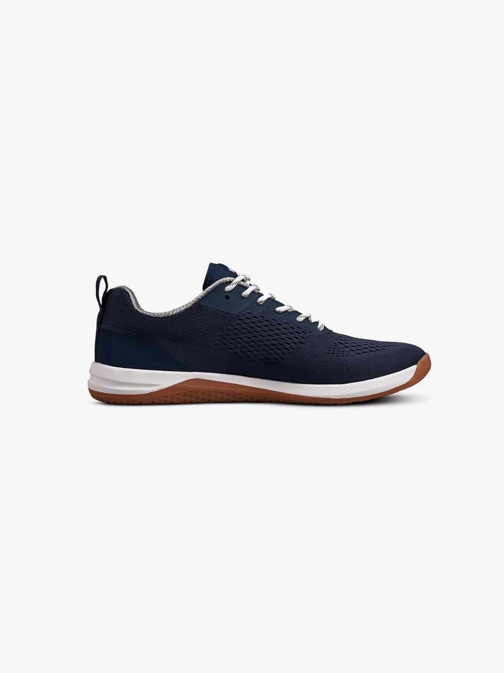 This classic navy blue colorway on gum rubber outsole comes with reflective shoelace and logo detail for visibility when on the move.