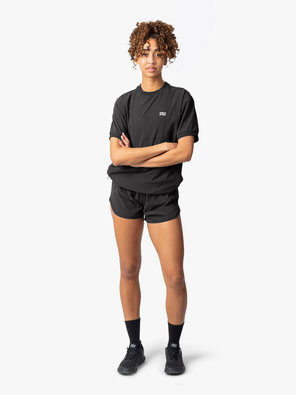 Lightweight short-sleeved top featuring our QuickDry™ 4-way stretch fabric. Large ChillMesh™ lined zippered kangaroo-style pocket. Wear it on its own or over a t-shirt or tank top for warm-up and cool-down periods. Doubles as a windbreaker for early morning runs or whenever the temperature calls for an extra layer. Reflective flag logo.