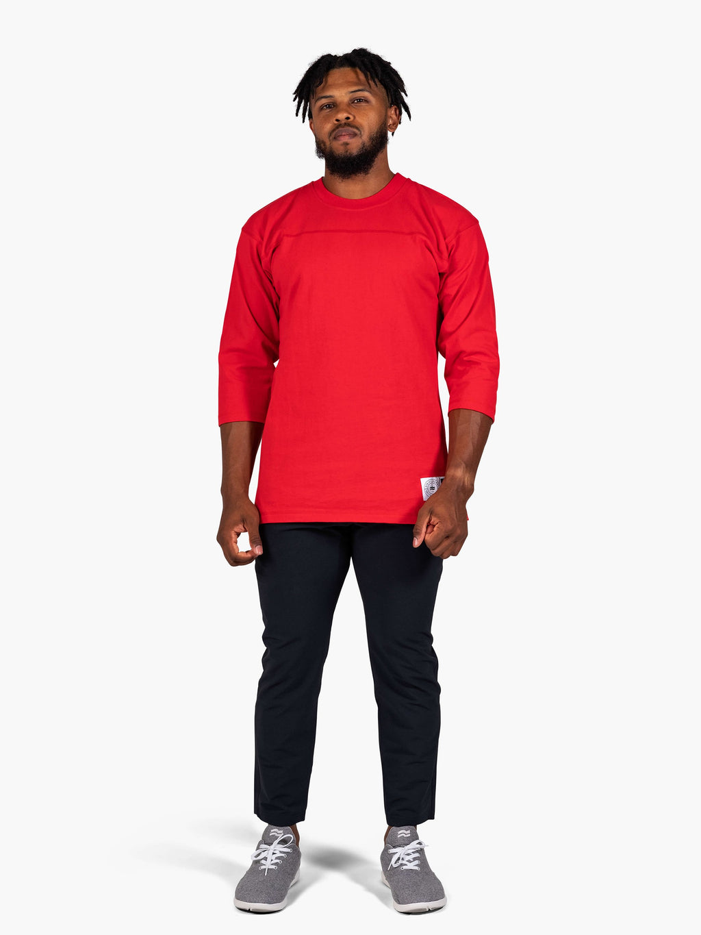 U.S. milled heavyweight cotton jersey feels comfortable and substantial on body. Premium ribbed underarm gussets offer extra breathability and full range of motion. This piece is perfect as a first or second layer.