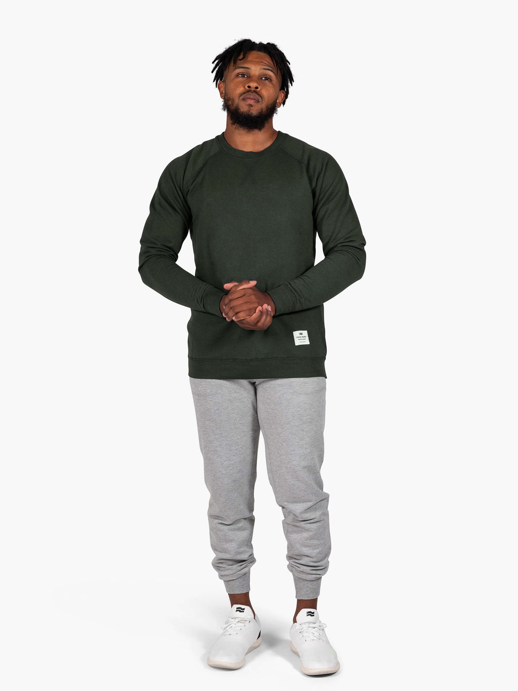 Athlete is 5'10' and wearing size L. Shown it with the Mobil Sweatpants  and Chill Pill Transit AF Trainers.