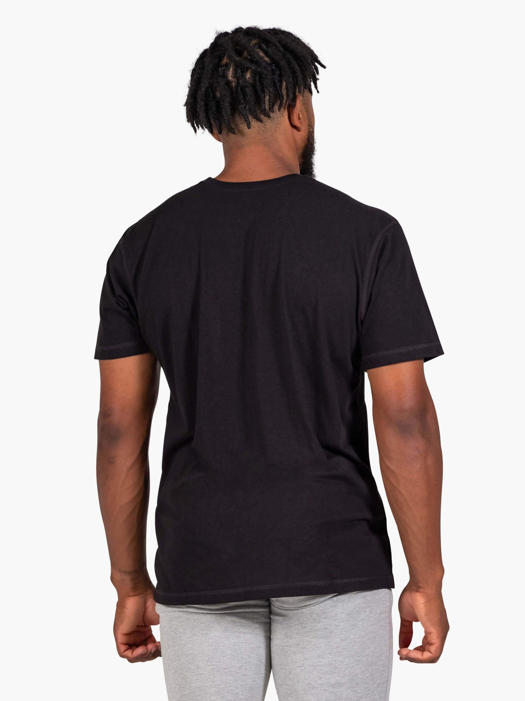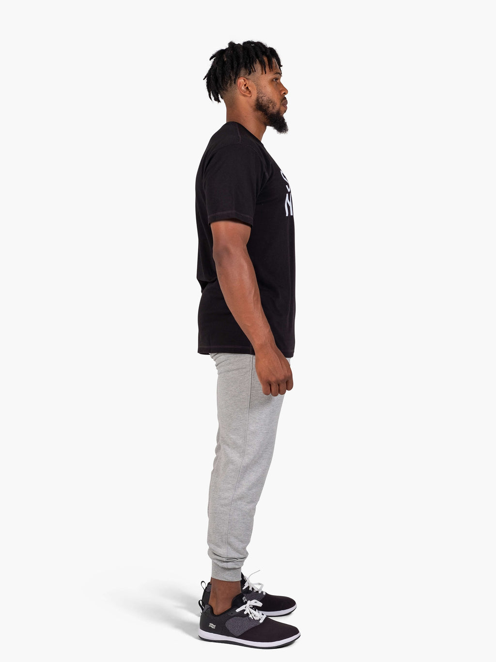Athlete is 5'8" and 175 lbs and is wearing a size medium Timeless Tee. Shown with Mobil Sweatpants and the Pace AF Trainers.
