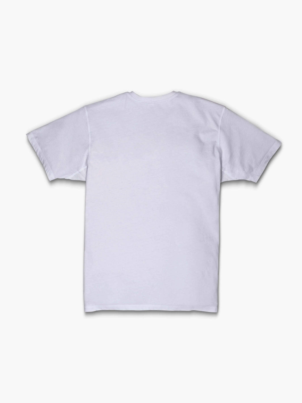 Athlete is 5'8"" and 175 lbs and wearing a size medium in the Timeless Tee. Shown with the PFW Cropped Pant and Pace AF Trainers.