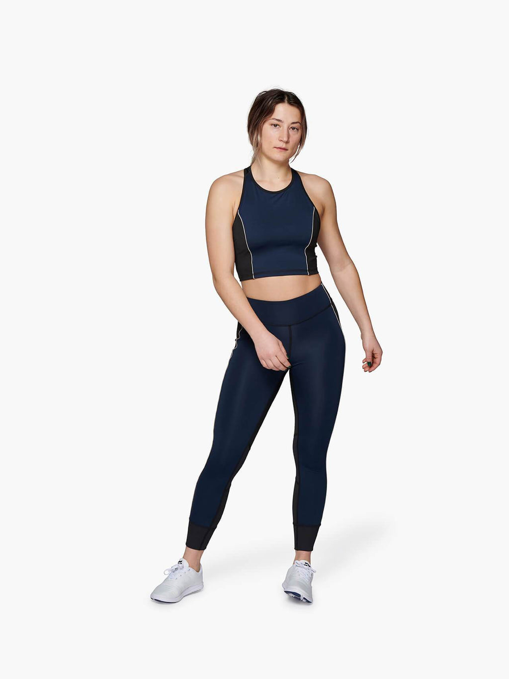 High-coverage Classic Bra fit with stretch vertical piping and colorblocking for a flattering silhouette. Medium support tailored for movement. Wear it on its own or under a tank or tee.